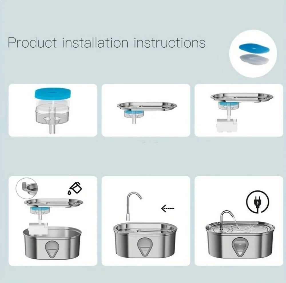 3.5L large capacity pet water dispenser automatic stainless steel cat water fountain with LED Lighting